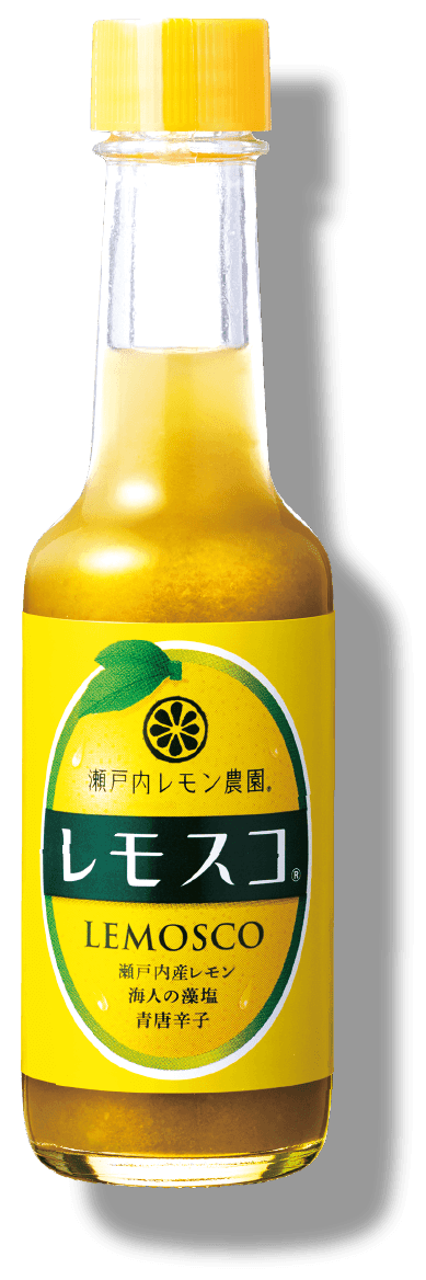 Lemosco is a condiment made with Setouchi Lemon juice from the Seto Inland Sea, vinegar, chili pepper, and algae salt, among other ingredients. It can be drizzled easily over meat, fish, salads, and all kinds of dishes to enjoy the refreshing citrus flavor of Setouchi Lemon.