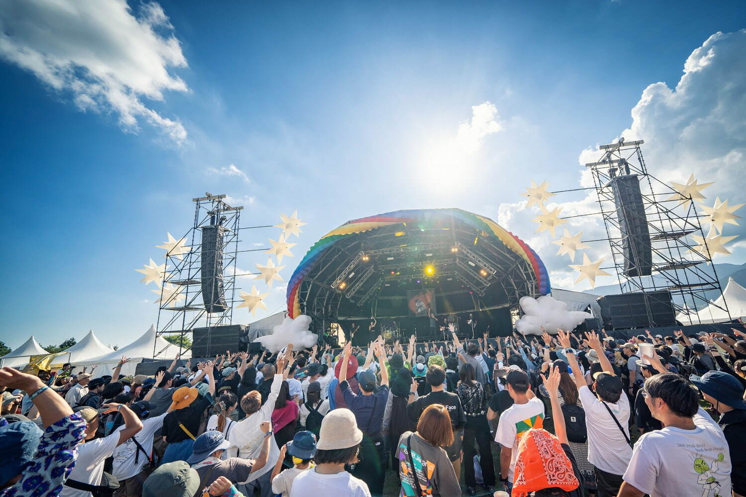 "Asagiri Jam" is a camping-style music festival held on a vast grassland with a panoramic view of Mt. Fuji, where visitors can pitch tents and stay overnight while enjoying the music.
