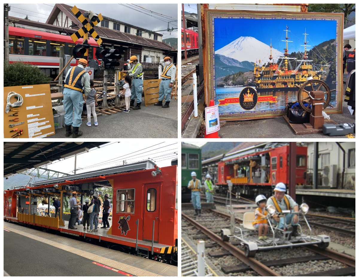 At Gora Station and Sounzan Station on the Hakone Tozan Railway, an event is held where visitors can experience the appeal of railways firsthand. Highlights include hands-on corners where you can try your hand at the roles of a train driver and conductor, as well as the chance to ride an AT maintenance vehicle used for track upkeep — all allowing guests to enjoy the fun side of railways.