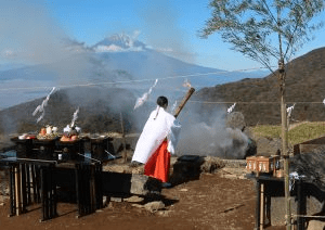 A flame is lit at the altar on the mountaintop while a shrine maiden offers prayers. The sight of the flickering flame with Mt. Fuji visible in the background is truly mystical, and it gives you a real sense of why this mountain has been a place of worship since ancient times.