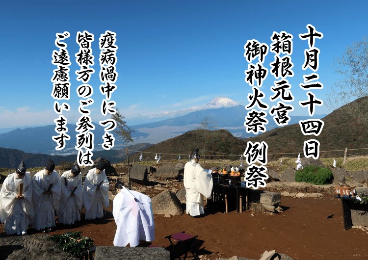 The Goshinka Junkosai (Sacred Fire Procession) is a ritual in which the flame from the Reitaisai is carried down to Hakone Shrine on the ground.