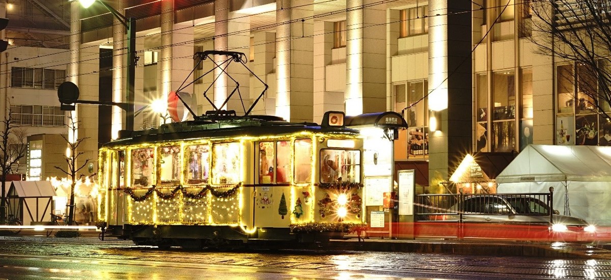 The Christmas Train is an event in which a tram decorated with illuminations, wreaths, and other Christmas ornaments runs through the city during the Christmas season — and it stands out as a beloved Hiroshima event in December 2026.