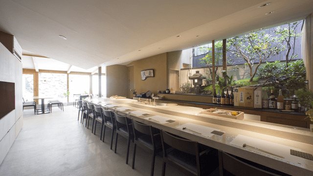 When I visited, I was also struck by the beautiful Japanese garden visible from the counter. You can enjoy a blissful lunch in a modern Japanese setting while watching the chef's skilled hands up close.