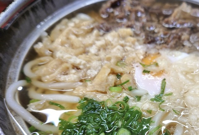 Another Kure specialty is Hosondon — a dish featuring noodles even thinner than the thick wheat udon noodles common in Japan, served in a mildly sweet broth. It is a style unique to Kure.