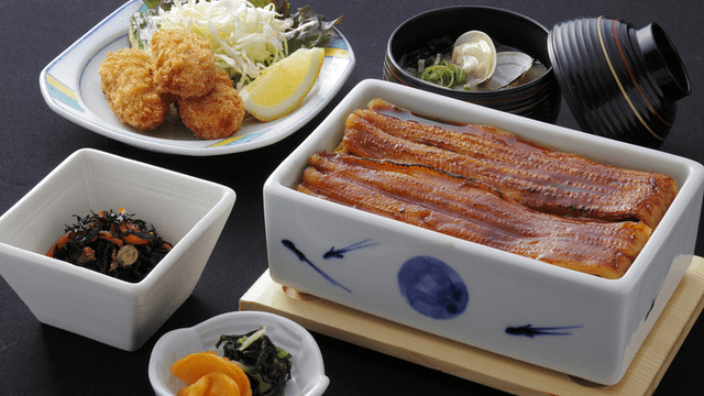 During lunch, set menus featuring deep-fried oysters and sea eel dishes are available at reasonable prices.