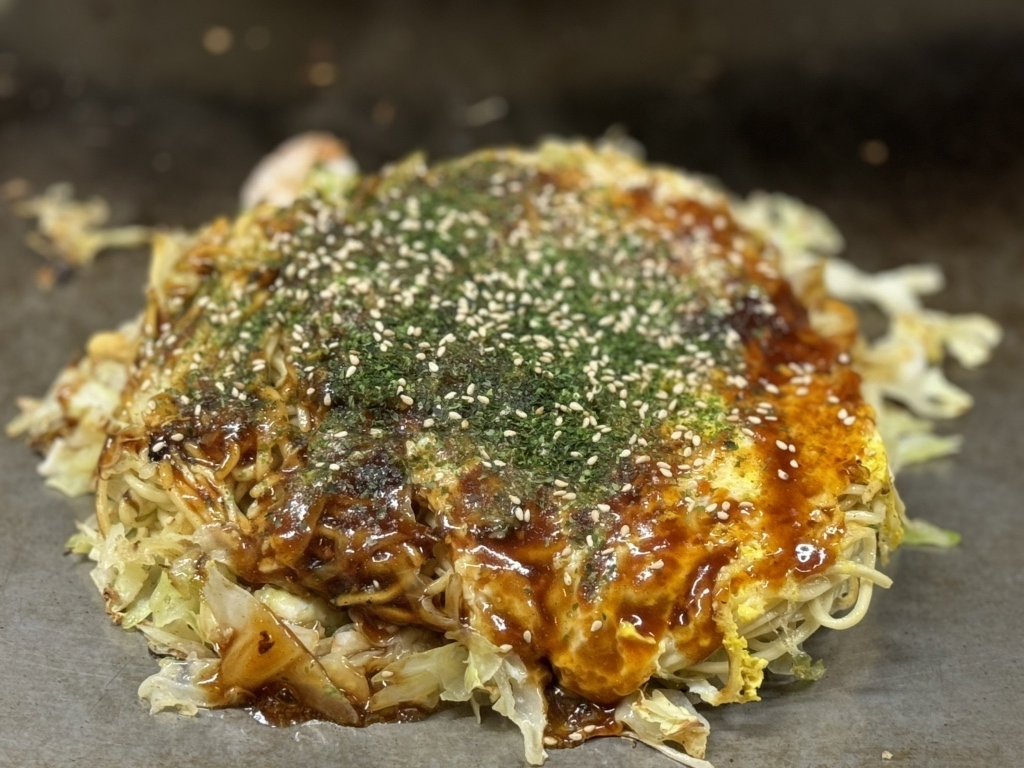 In Japan, dishes cooked on a griddle like pancakes are called Okonomiyaki, but the Hiroshima Style is defined by its signature layered structure, with ingredients piled high in multiple tiers.