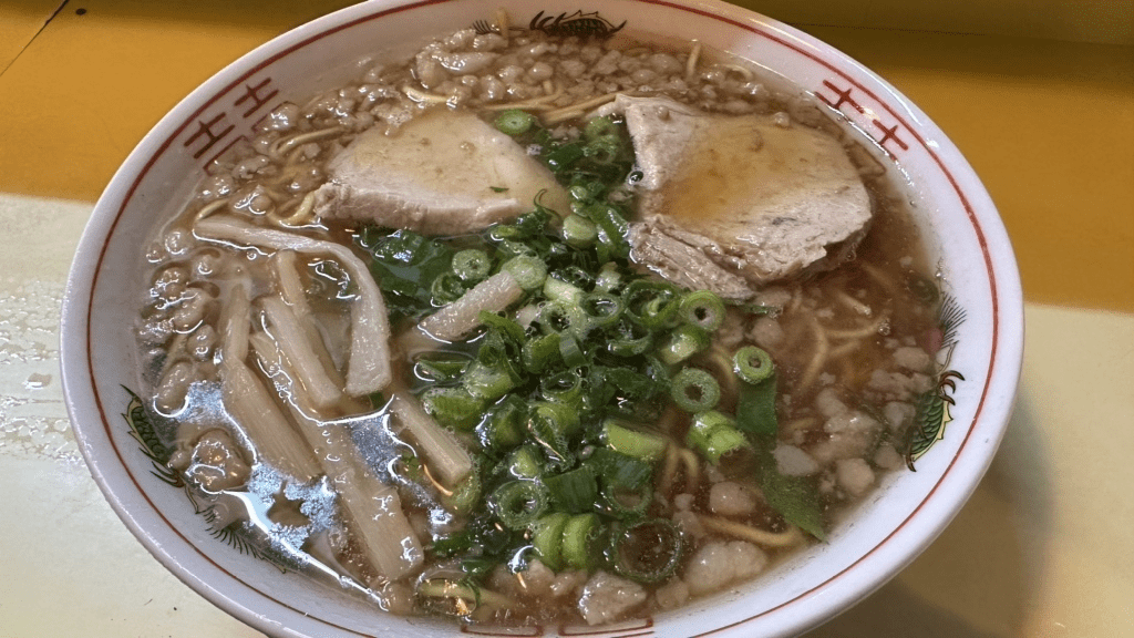 The must-try dish in this town is Onomichi Ramen. Onomichi Ramen features a soy sauce-based broth made with chicken bones and small fish from the Seto Inland Sea, topped with a layer of pork back fat floating on the surface.