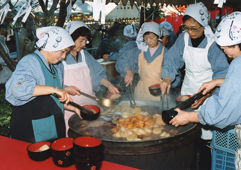 During the Kamakura era (1185–1333), it was believed that writing Sanskrit characters on daikon and cooking them on the day Buddha attained enlightenment held the power to ward off misfortune and illness.