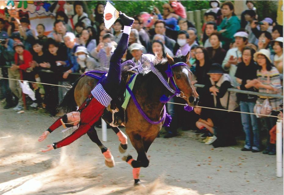 Established in 1093, "Kamo Kurabeuma" is considered the origin of Japanese horse racing. Two riders in ceremonial court music costumes compete for speed, praying for world peace and abundant harvests.