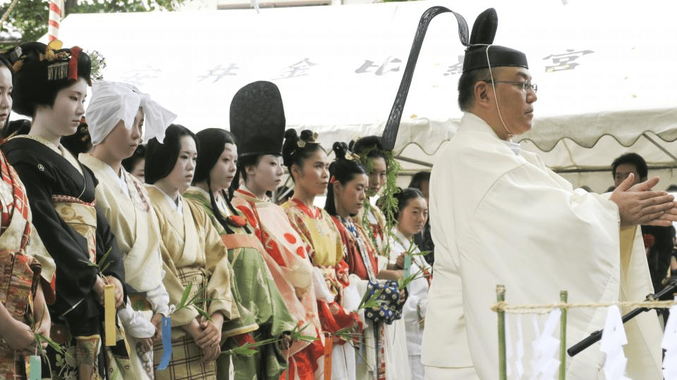 During the festival, a Shinto ritual is first held to respectfully lay worn-out combs to rest in a ceremonial mound. This is followed by a highlight of the event — a procession in which women dressed in costumes from different historical eras parade through the streets.