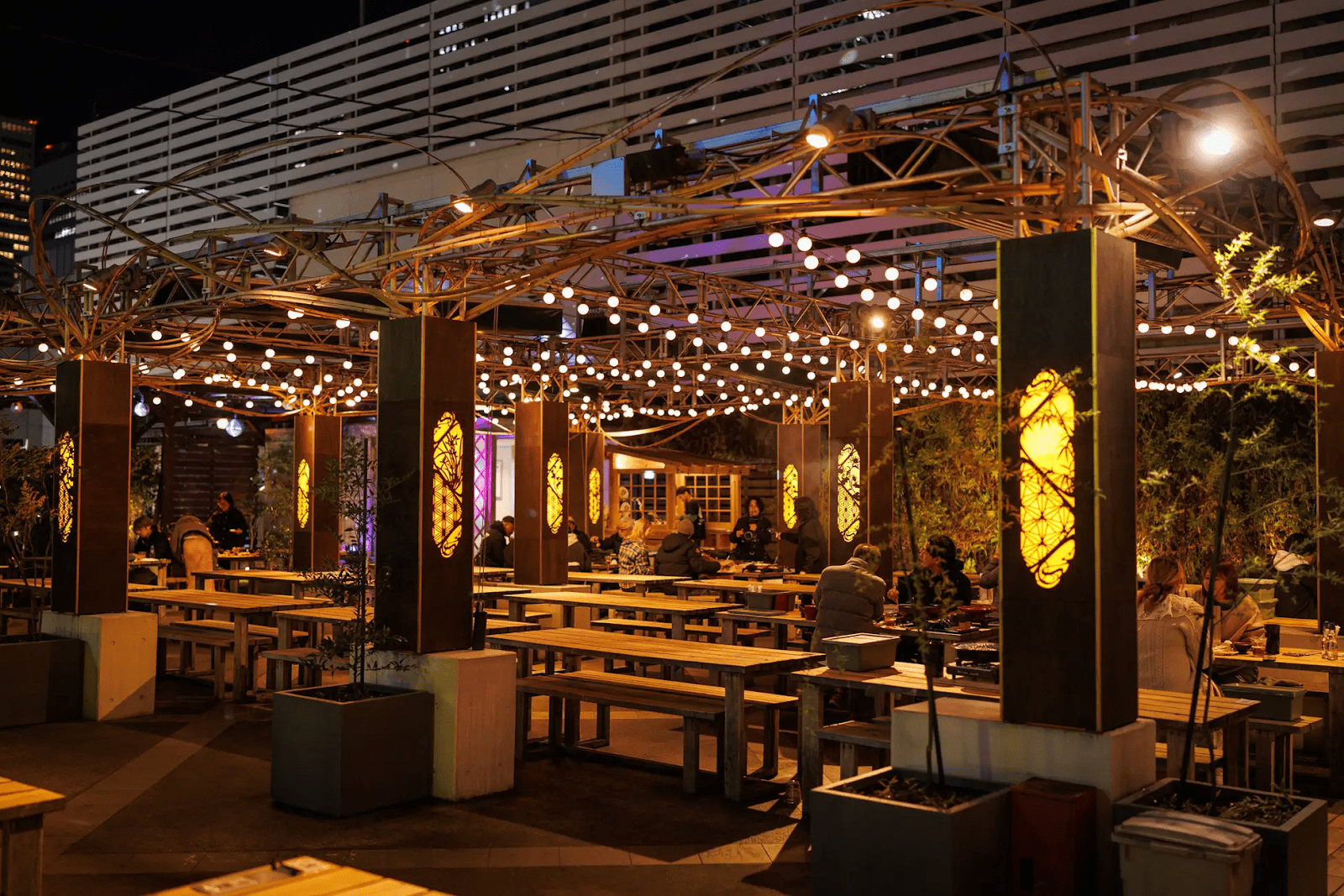 The venue is equipped with a cooling system called the "Cool Mist LINE," which keeps the outdoor space comfortable even in summer heat. It's a wonderful dinner spot to wind down after a day of exploring the city.