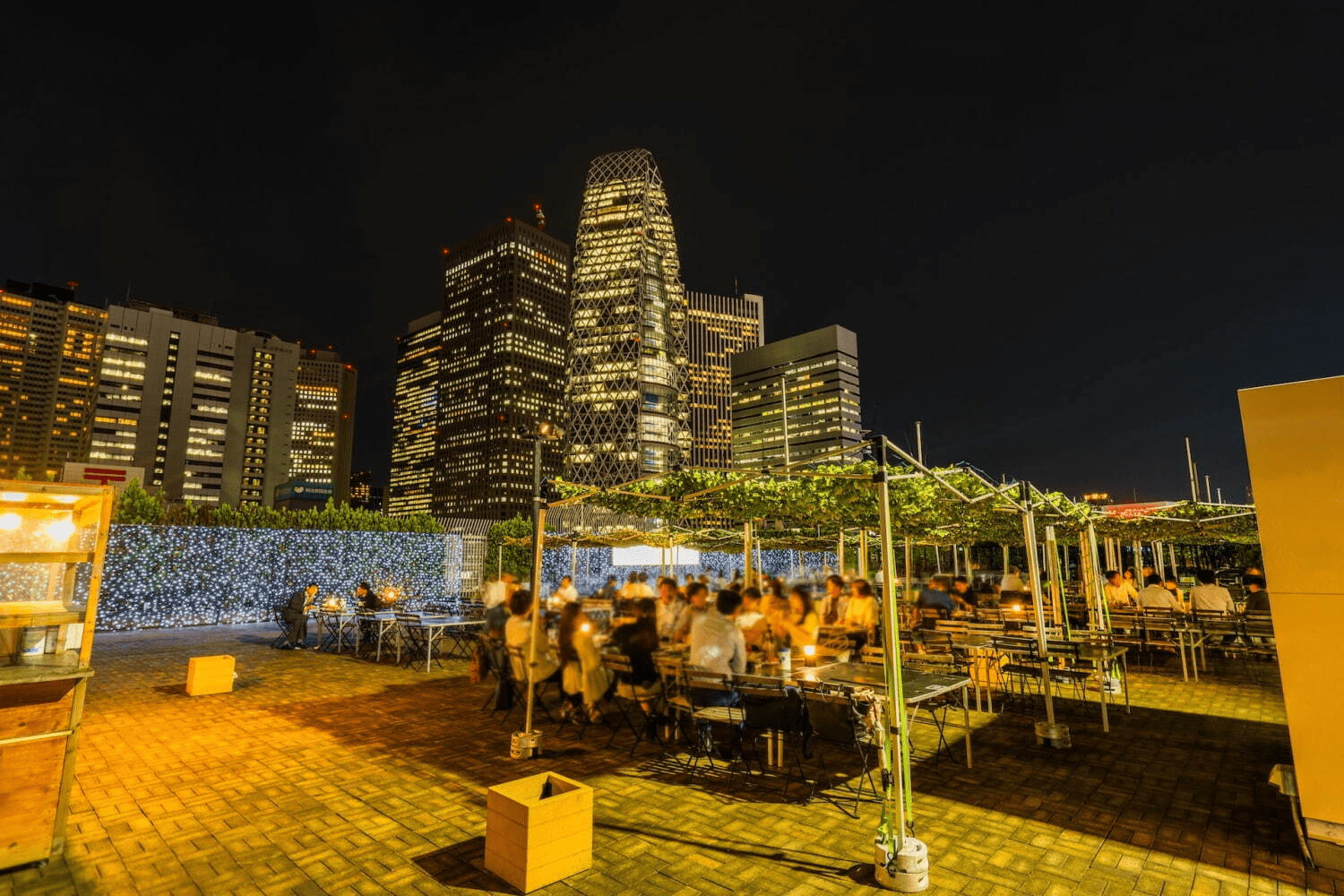Tabisuru Beer Garden HELLO is held on the rooftop of LUMINE Shinjuku 1, with the appealing advantage of being directly connected to Shinjuku Station.