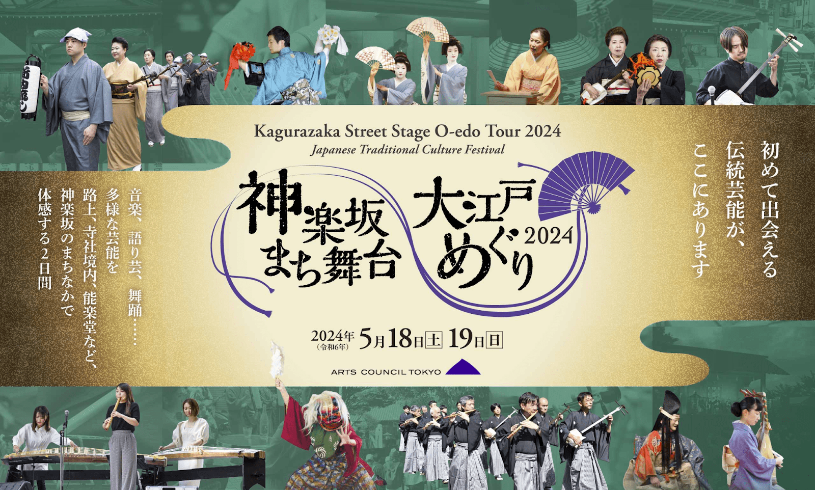 The "Kagurazaka Street Stage O-edo Tour" is a city-wide cultural event held every May in the Shinjuku and Kagurazaka area. Set against the backdrop of Kagurazaka's cobblestone alleyways, historic buildings, and shrines and temples, the event showcases a wide variety of traditional Japanese performing arts.