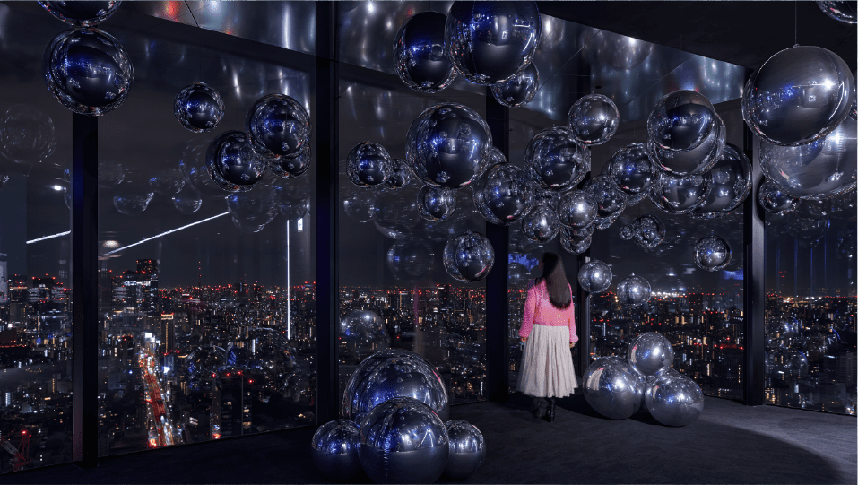 At the venue, mirror balloons of various sizes are placed throughout the space, reflecting the ever-changing night scenery and lighting. Immersive music composed by globally acclaimed artist evala plays throughout, creating a deeply fantastical atmosphere.