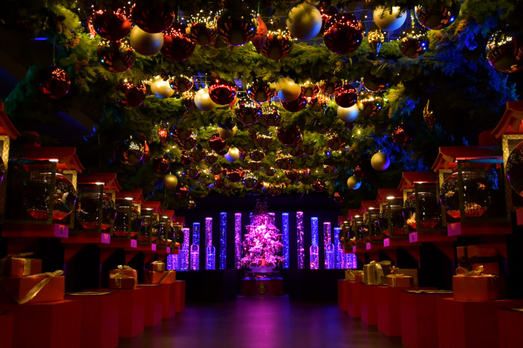 The snow domes had a feature where you could take photos together with glowing snow crystals when you entered them. The large 15-meter-high tree also had lighting that changed every 15 minutes and soap bubbles, making it an enjoyable illumination that never gets boring.