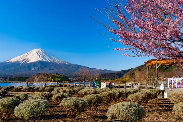 ・Spring (April to May): This is the season when the contrast between cherry blossoms and Mount Fuji is beautiful. It's one of my favorite seasons. The combination of cherry blossoms blooming around Lake Kawaguchi and Mount Fuji is spectacular. Also, the temperature is comfortable and it's an easy season for sightseeing. However, be careful of crowds during Golden Week (late April to early May).