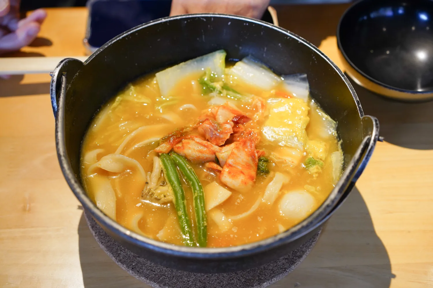 The Hoto soup is made with a broth of dried sardines, shiitake, and other ingredients, finished with miso. The udon noodles are made the day before and rested to firm up, giving them an outstanding chewy texture.
